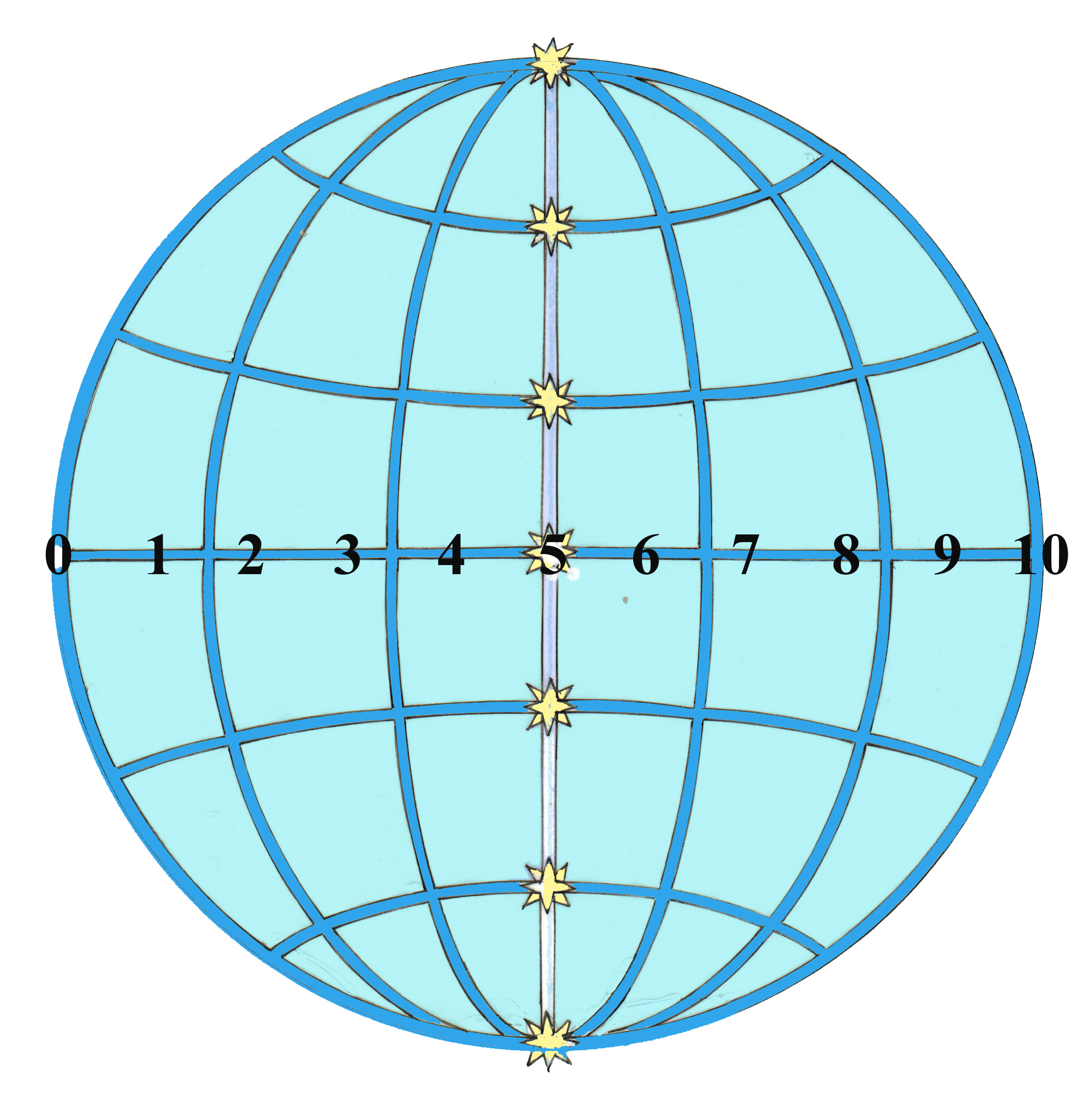 (From Physics.com: The sphere is a perfectly round geometrical and circular object in three-dimensional space that resembles the shape of a completely round ball. Like a circle, which, in geometric contexts, is in two dimensions, a sphere is defined mathmeatically as the set of points that are all the same distance (r) from a given point in three-dimensional space. This distance (r) is the radius of the sphere, and the given point is the center of the sphere. The maximum straight distance through the sphere passes through the center and is thus twice the radius; it is called the diameter.)