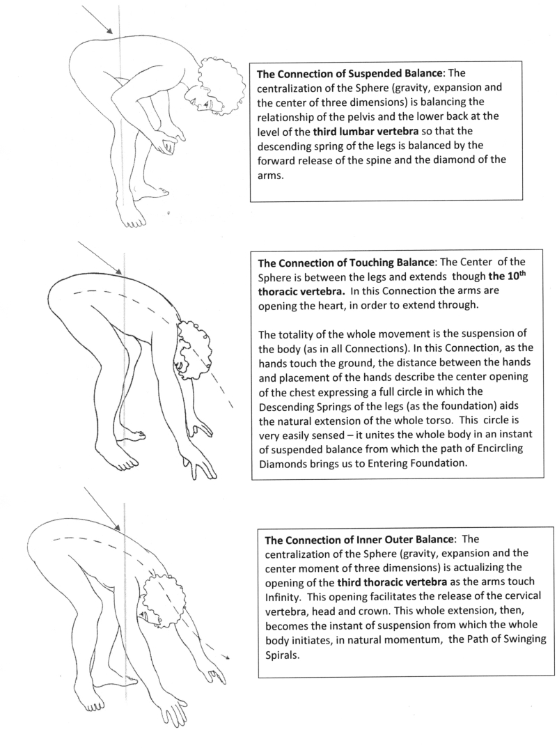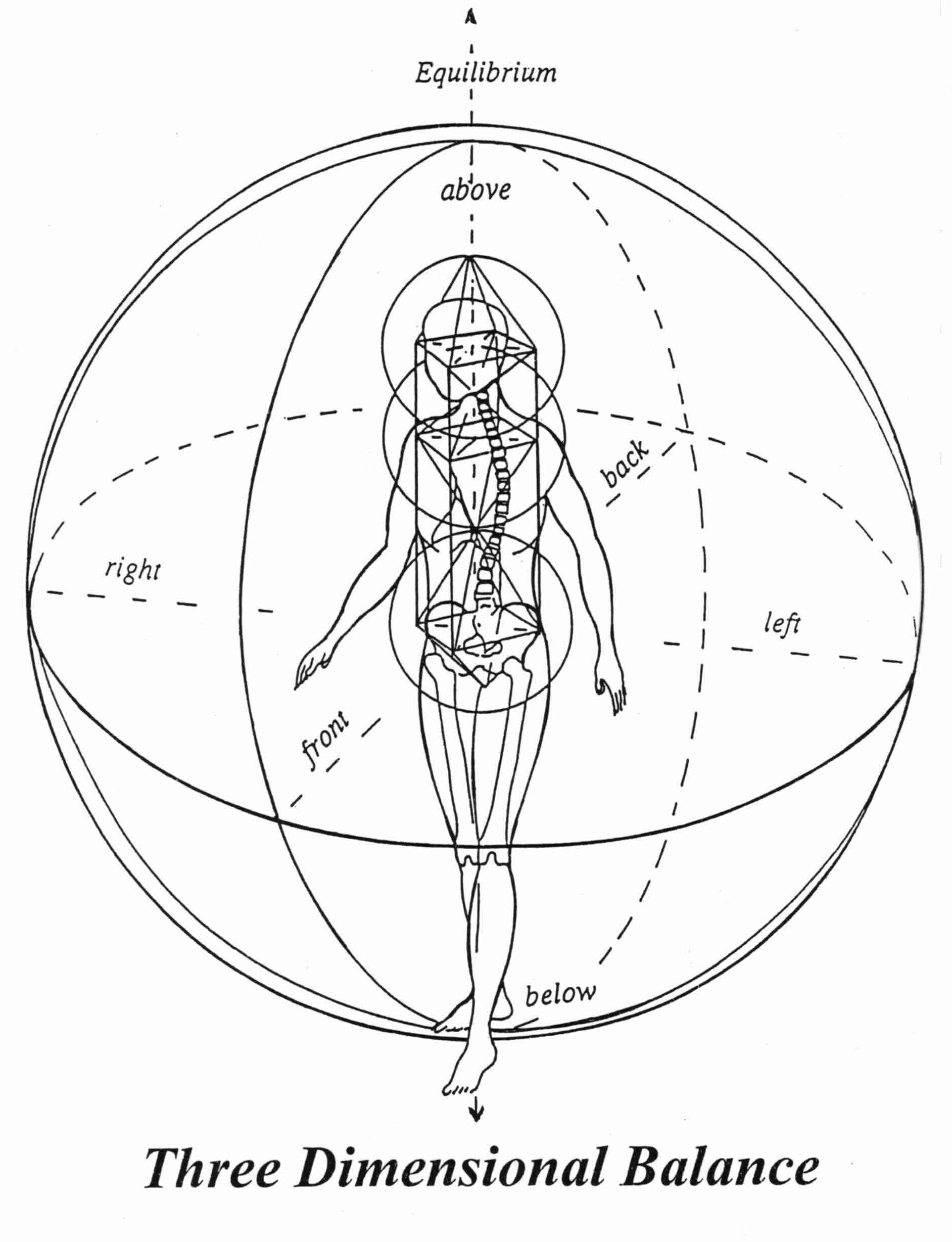 This is a definition of three dimensions in which the natural bio-mechanical relationship of the whole of the body, expressed though the Connection, utilizes the central line of three dimensions within the Sphere of Life, releasing and facilitating the natural direction of balance.