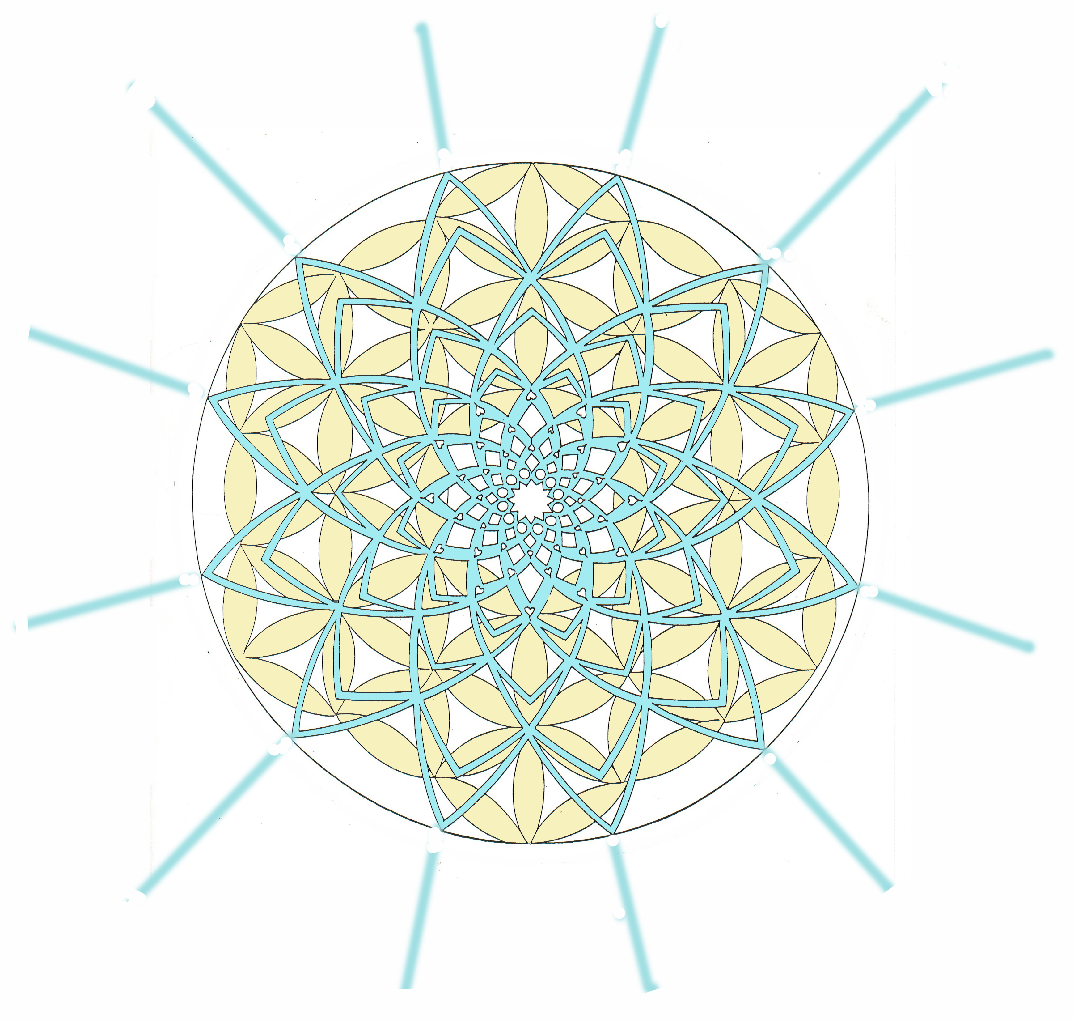 To my amazement these specific points of unity within the Mandala matched the 19 interlacing flowers . They where a perfect fit!