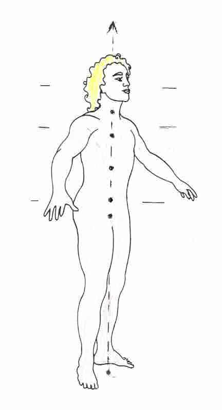 The lumbar vertebrae of the lower back, the thoracic vertebrae extending through the second curvature expanding the chest as it is centralized by THE HEART and the cervical vertebrae extending through the neck revealing the center of the throat and liberating the natural vertical extension of Crown.