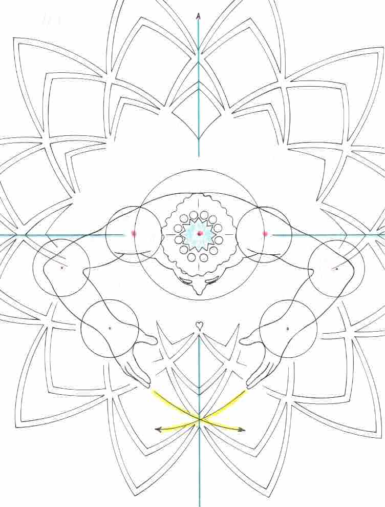 Therefore, in the initiation of the Inner Mandala for example we are activating Foundation ( pelvis and pelvic floor ) ….The Delicate Heart –which is the Solar Plexus – and the point of connection of the arms in space that allows us to ascend through the thoracic vertebrae through the path of Infinity’s Gate all the way to the Outer Arc of Infinity.