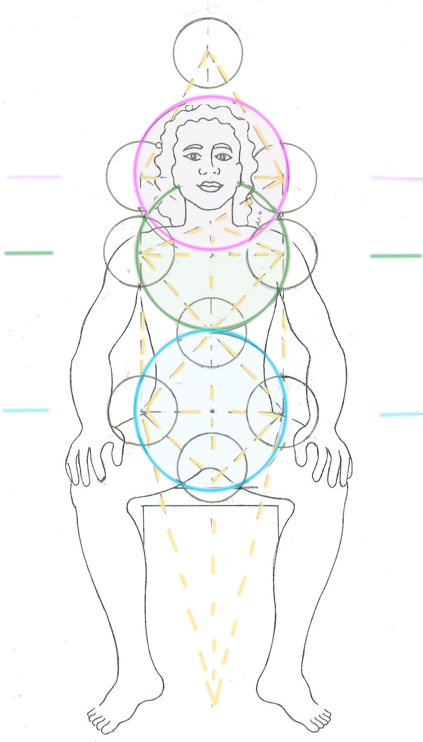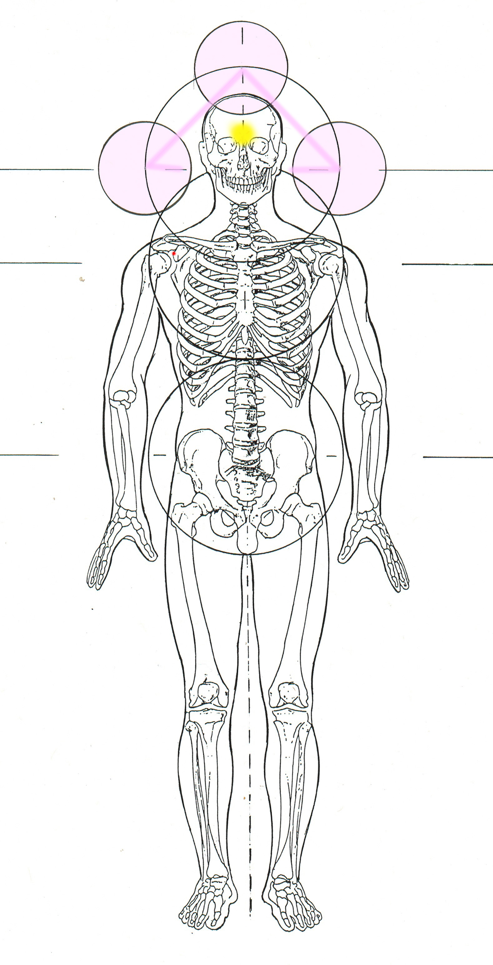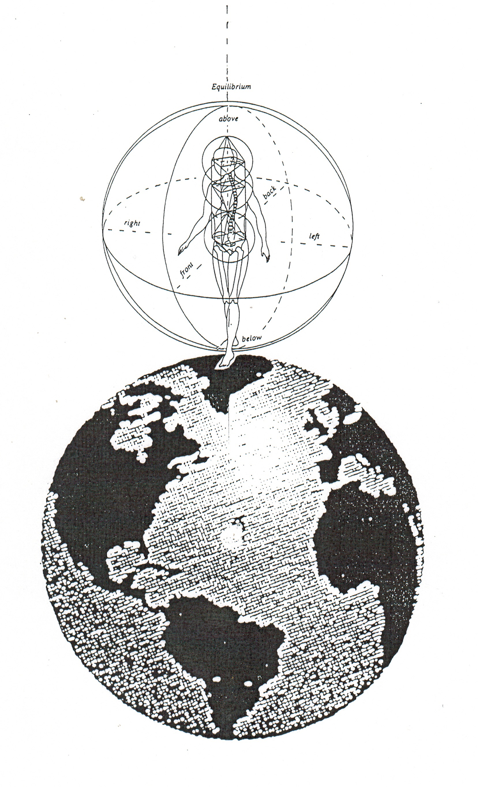 THREE DIMENSIONAL MAP OF BALANCE (1)The Centers relating to the head, heart and foundation depicted as spherical formation, expressing clearly the three-dimensional equality existing between above and below, right and left, front and back directions of space.