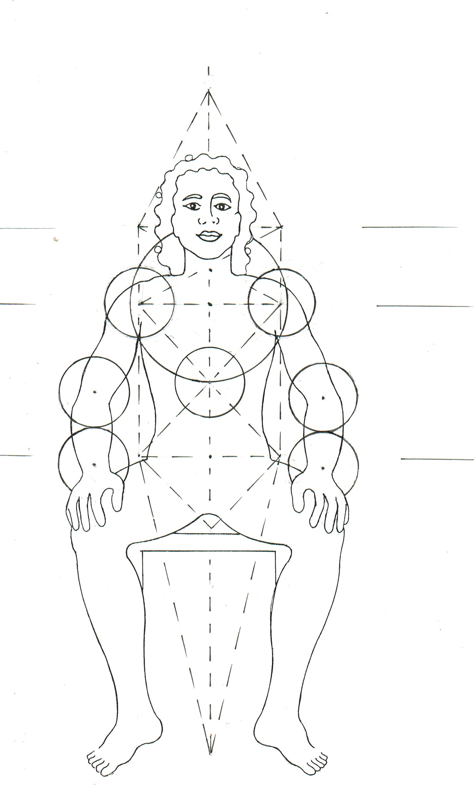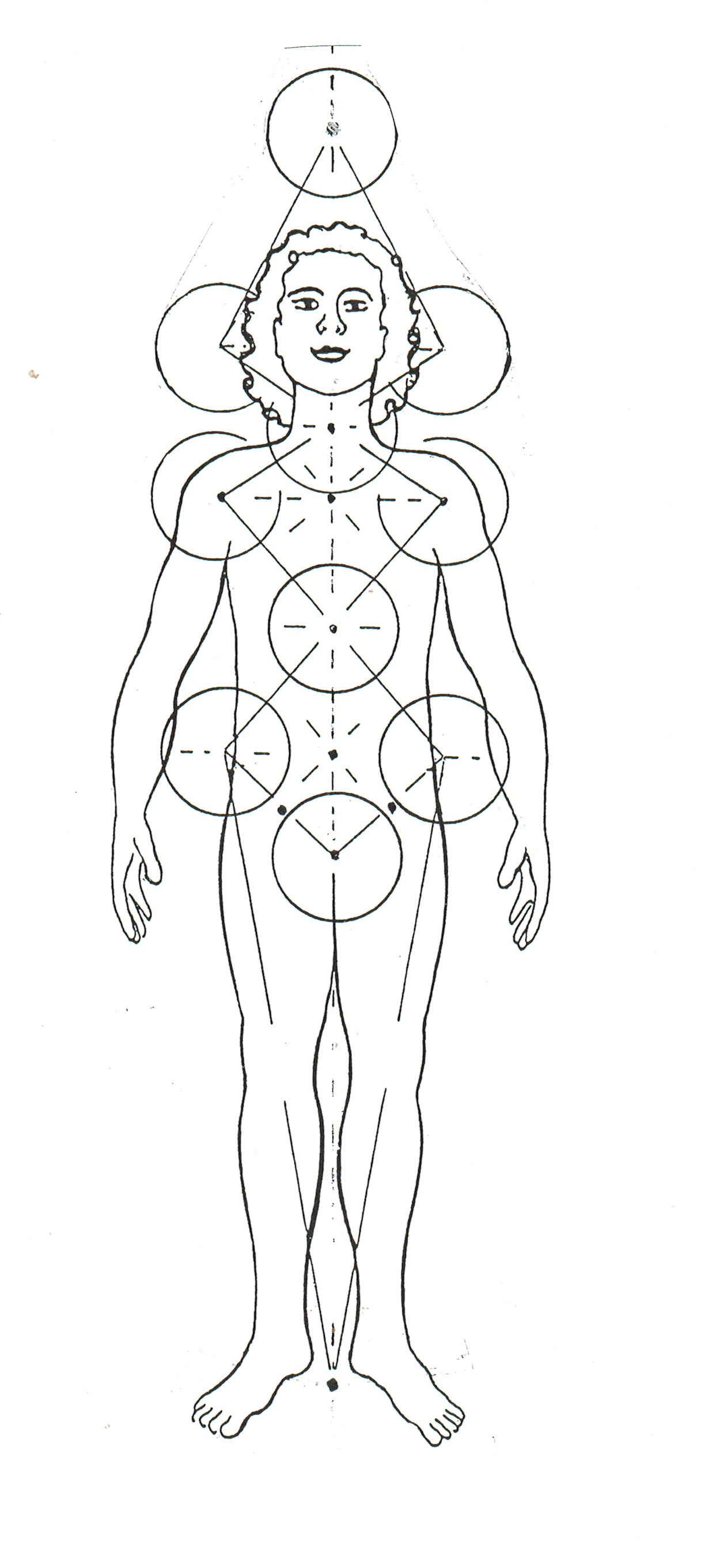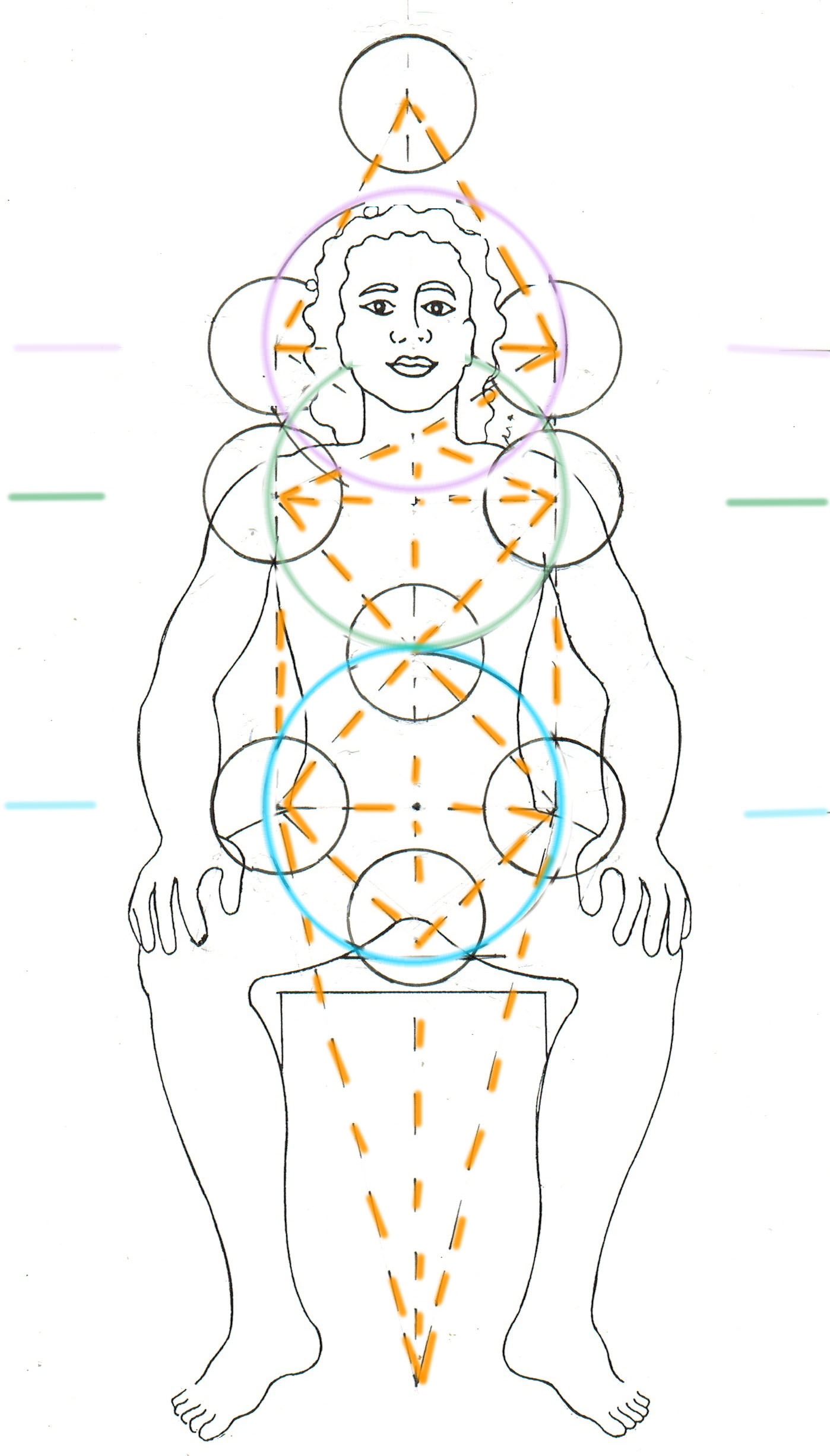 THREE DIMENSIONAL MAP OF BALANCE (1)The Centers relating to the head, heart and foundation depicted as spherical formation, expressing clearly the three-dimensional equality existing between above and below, right and left, front and back directions of space.