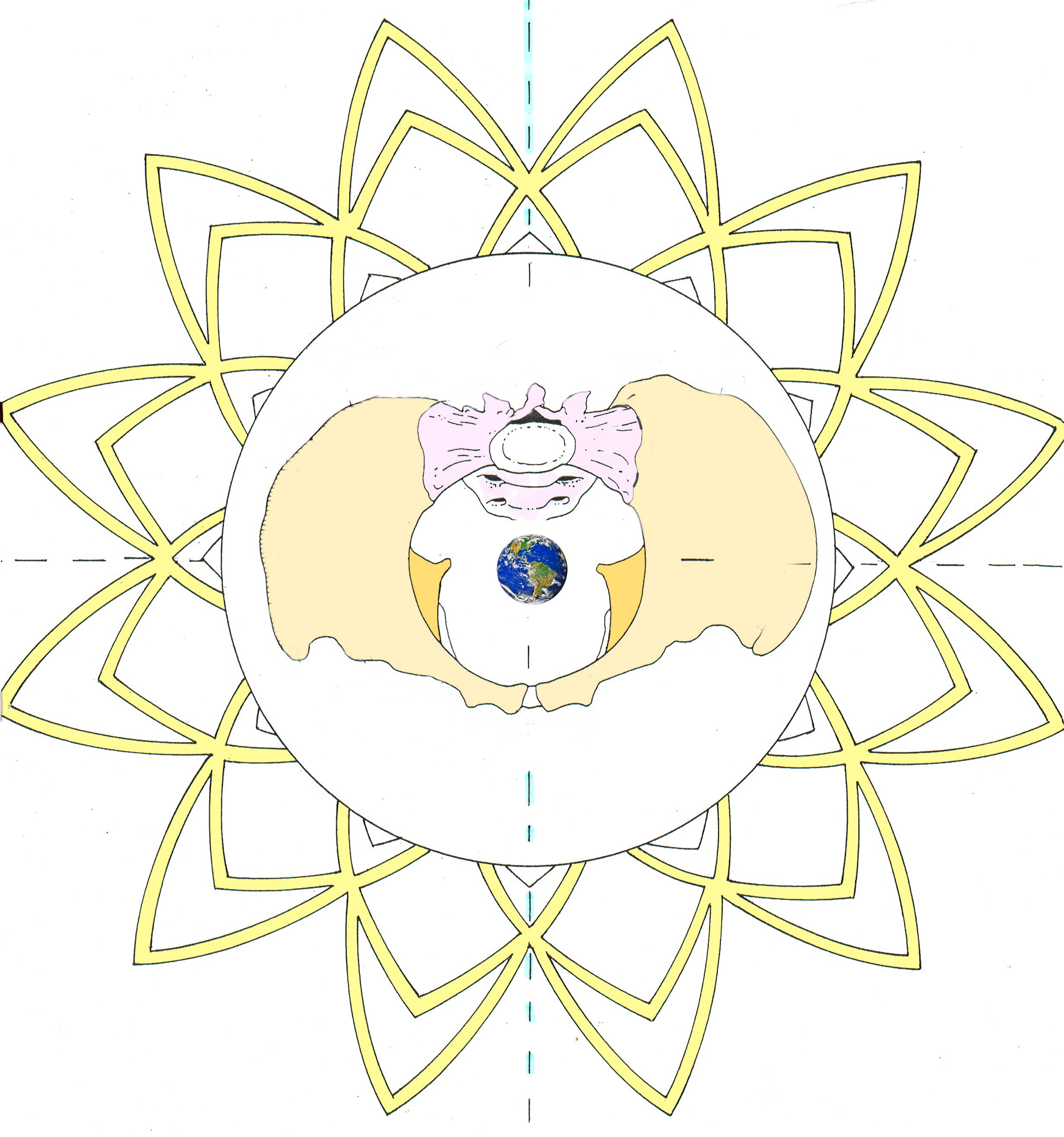 Structurally – The right and left centralization of the Pelvic Girdle and Legs centralized at the center of the pelvis as the physical formation of Life.