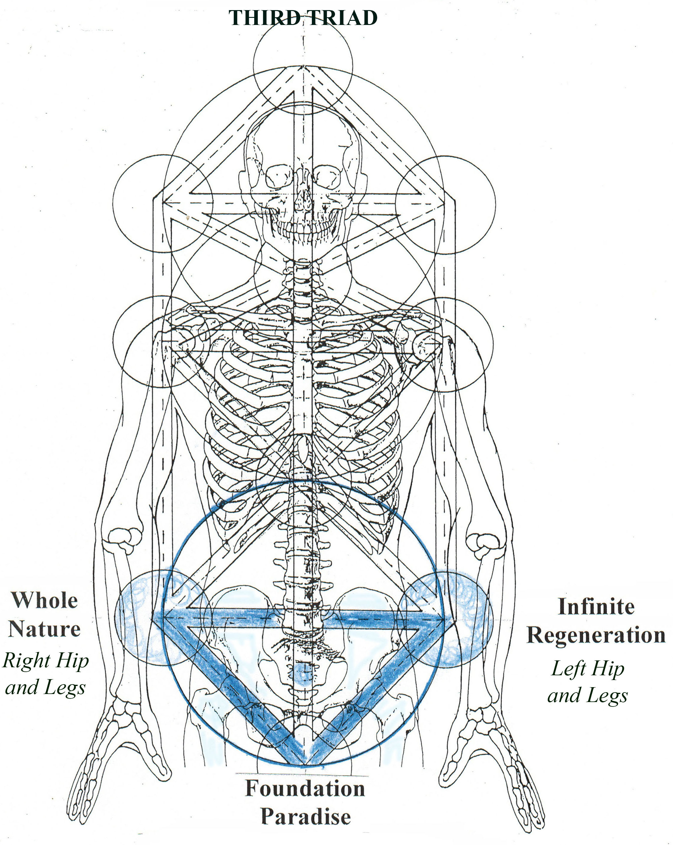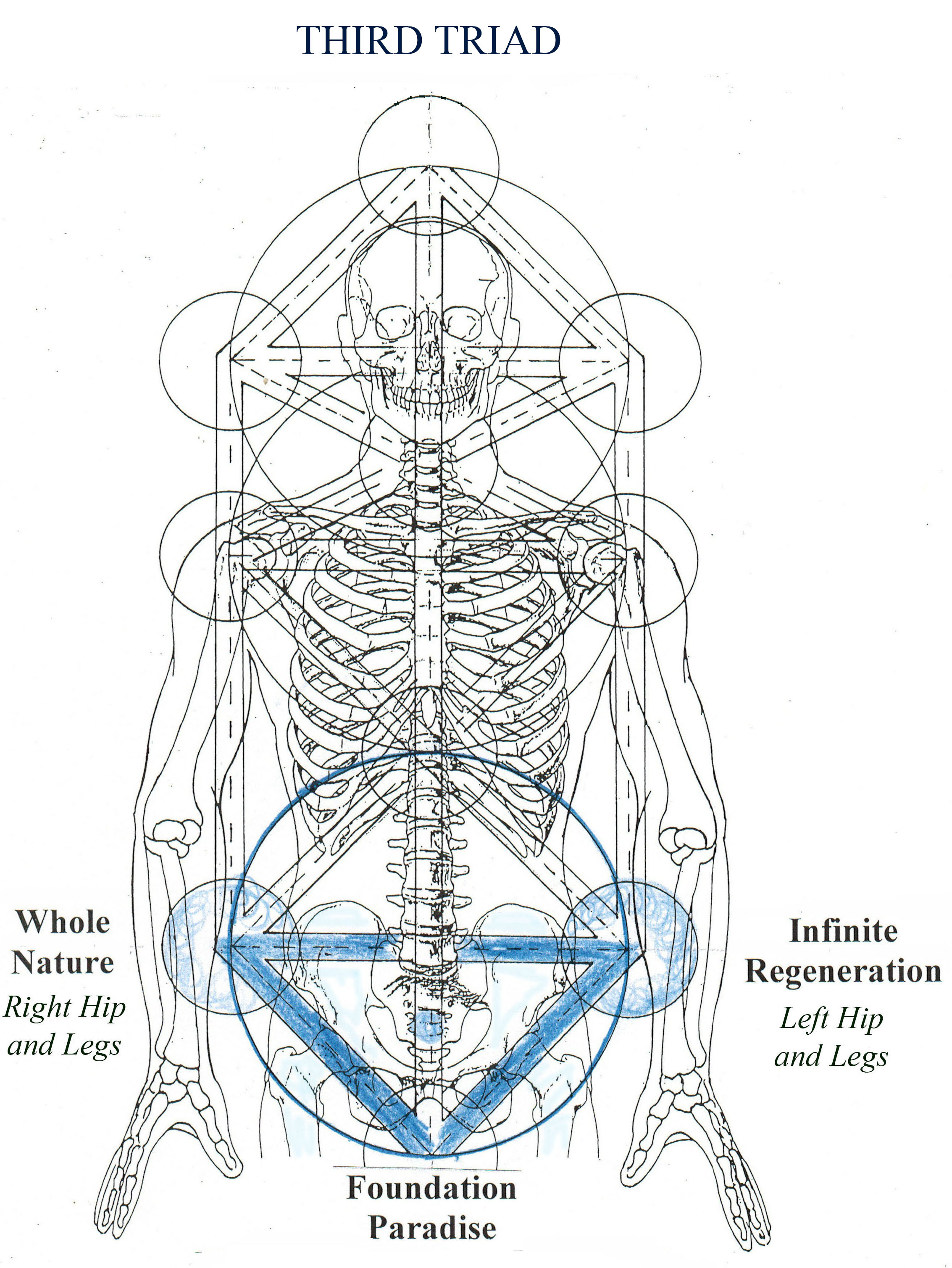 The Third Triad is the structural foundation of the body expressing the unification of the right and left sides of the pelvic girdle and legs centralized at the center of the pelvis and the center of the pelvic floor.