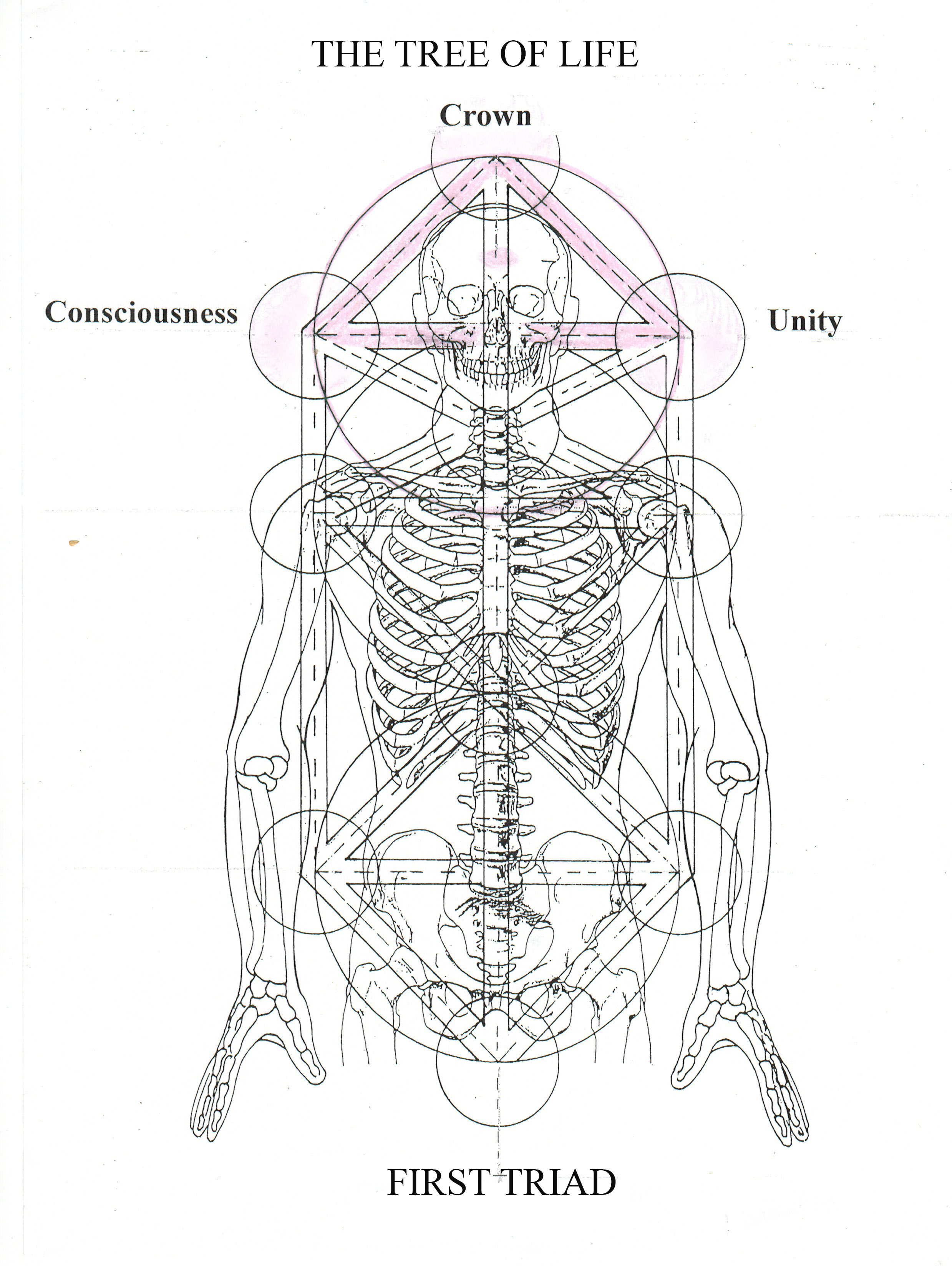 This Triad as it relates to consciousness is the unification of the Dimensions of Whole Nature, Infinite Regeneration and Foundation Paradise. The Unity of these three expressions of Consciousness is centralized at the center of the pelvic girdle expressing Physical Reality – The Ecstasy of Life.