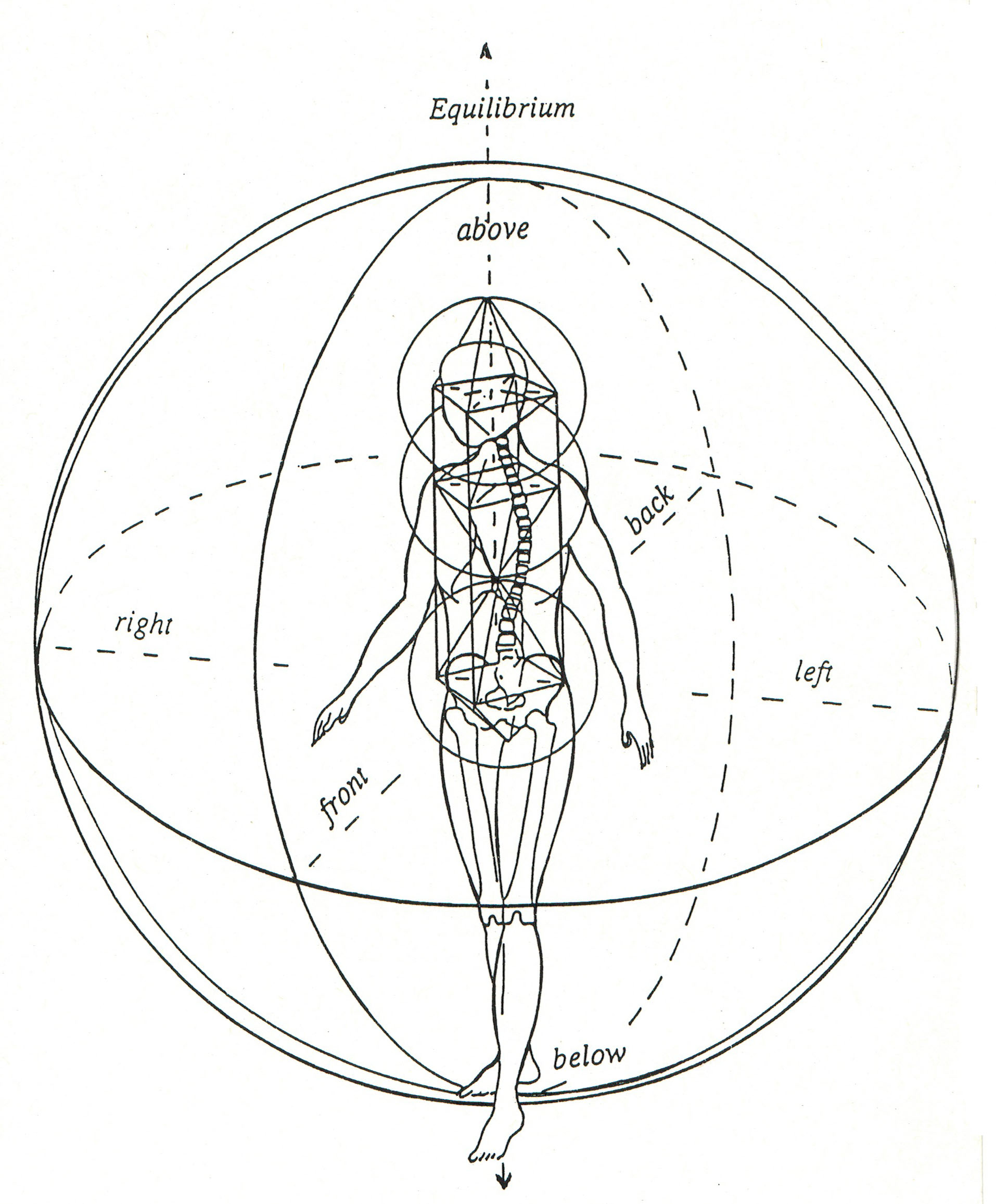 1, A whole design which we call The Matrix of Balance made of planes and directions that express the balance of the physical, structural formation of the human body as it is centralized in three-dimensional space: